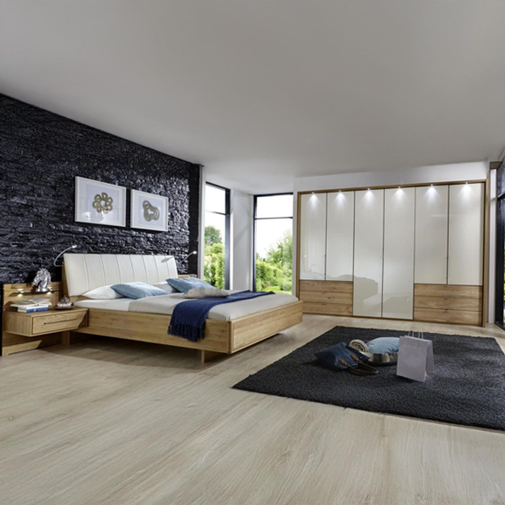 Clearance - Serena Panorama Wardrobe - 6 Door Bi Fold - 6 Drawers - Champagne Glass Front and Oak Carcase - FSS15635