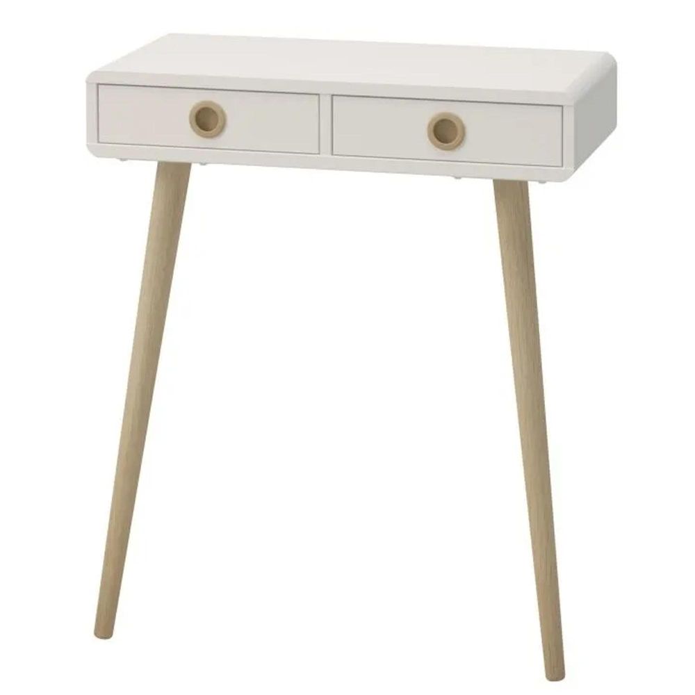 Finished in white with pine stained handles and tapered legs, the Shetland low hall table brings mid-century style to any home. The clean, streamlined appeal of this unit suits almost any decor, and will look great whether you opt for it as a standalone piece, or choose other items from the range to complete the look.