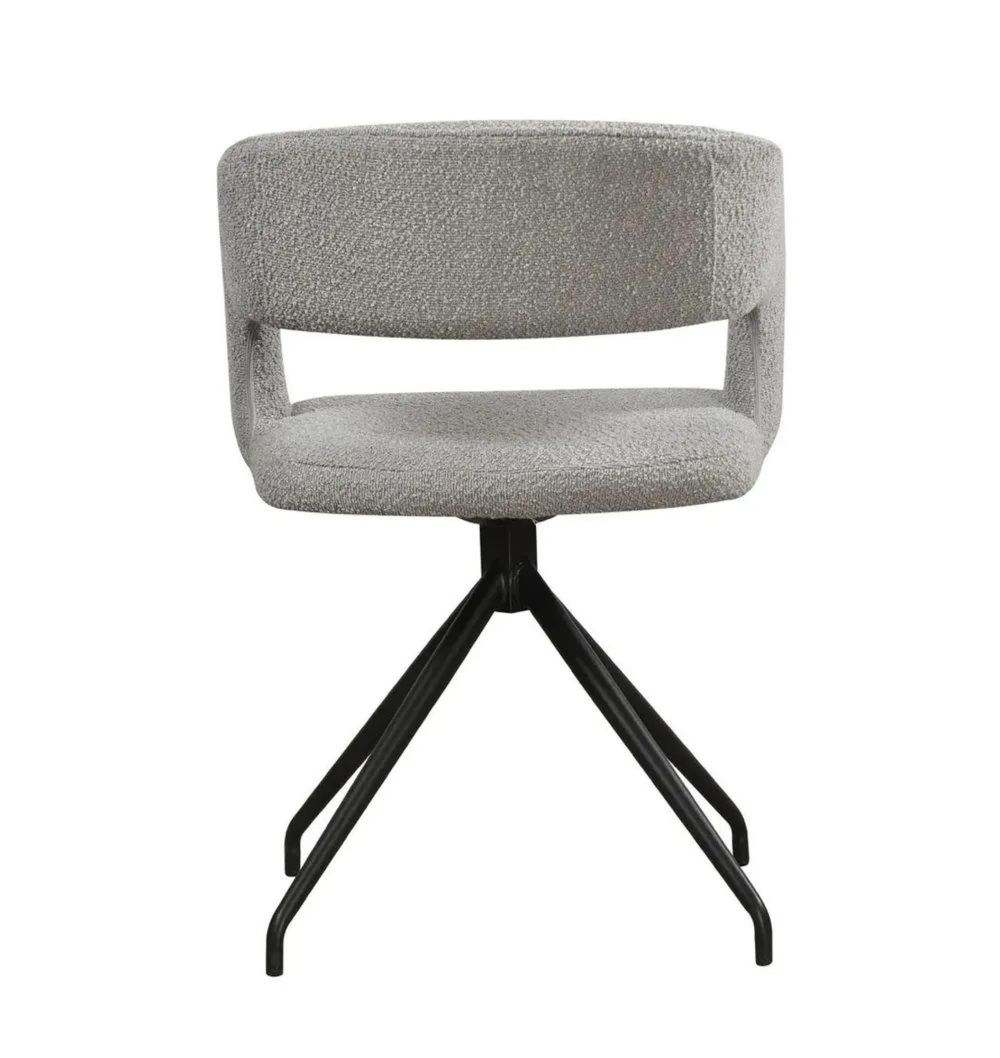Clearance - Swivel Dining Chair - Set of 2 - Light Grey Boucle Fabric - Black Metal Leg - FSS15617