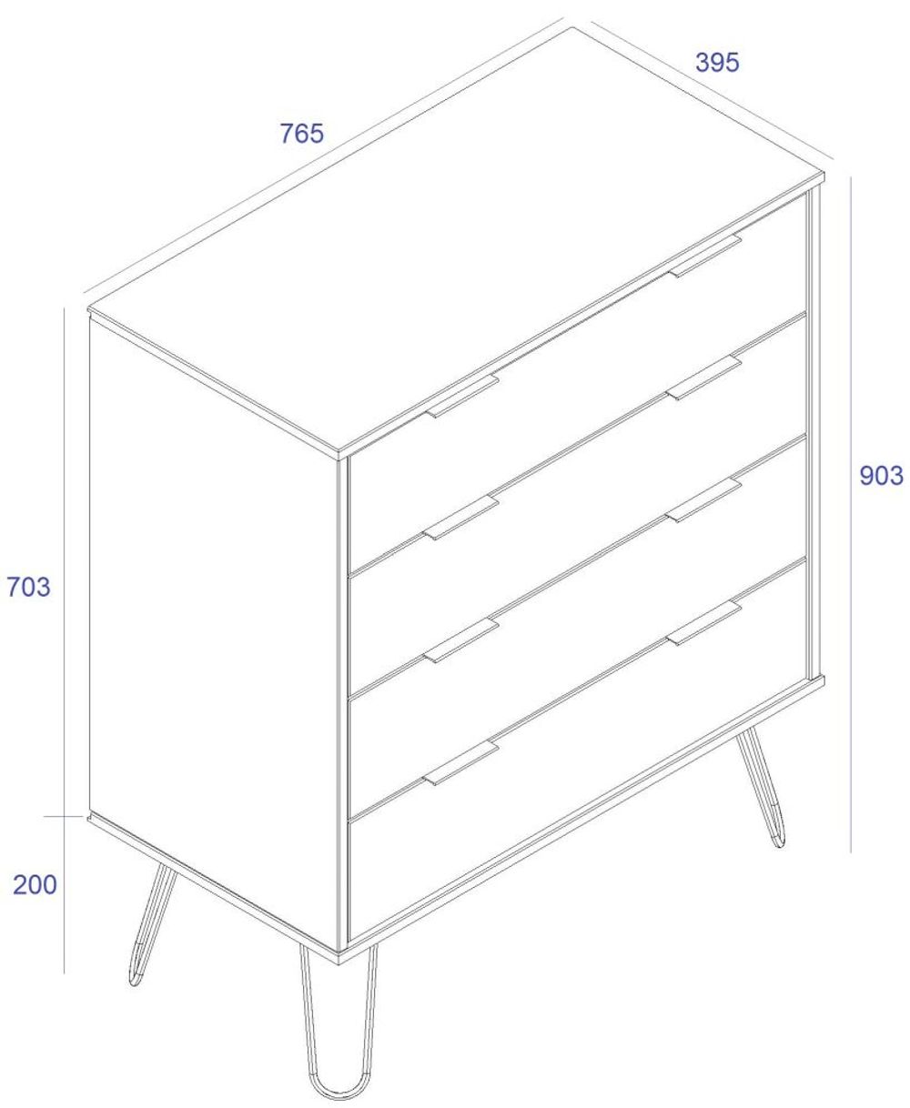 Augusta Pine 4 Drawer Chest with Hairpin Legs