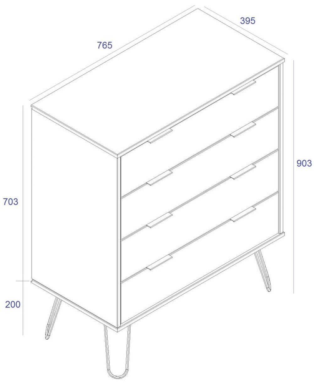 Augusta White 4 Drawer Chest with Hairpin Legs