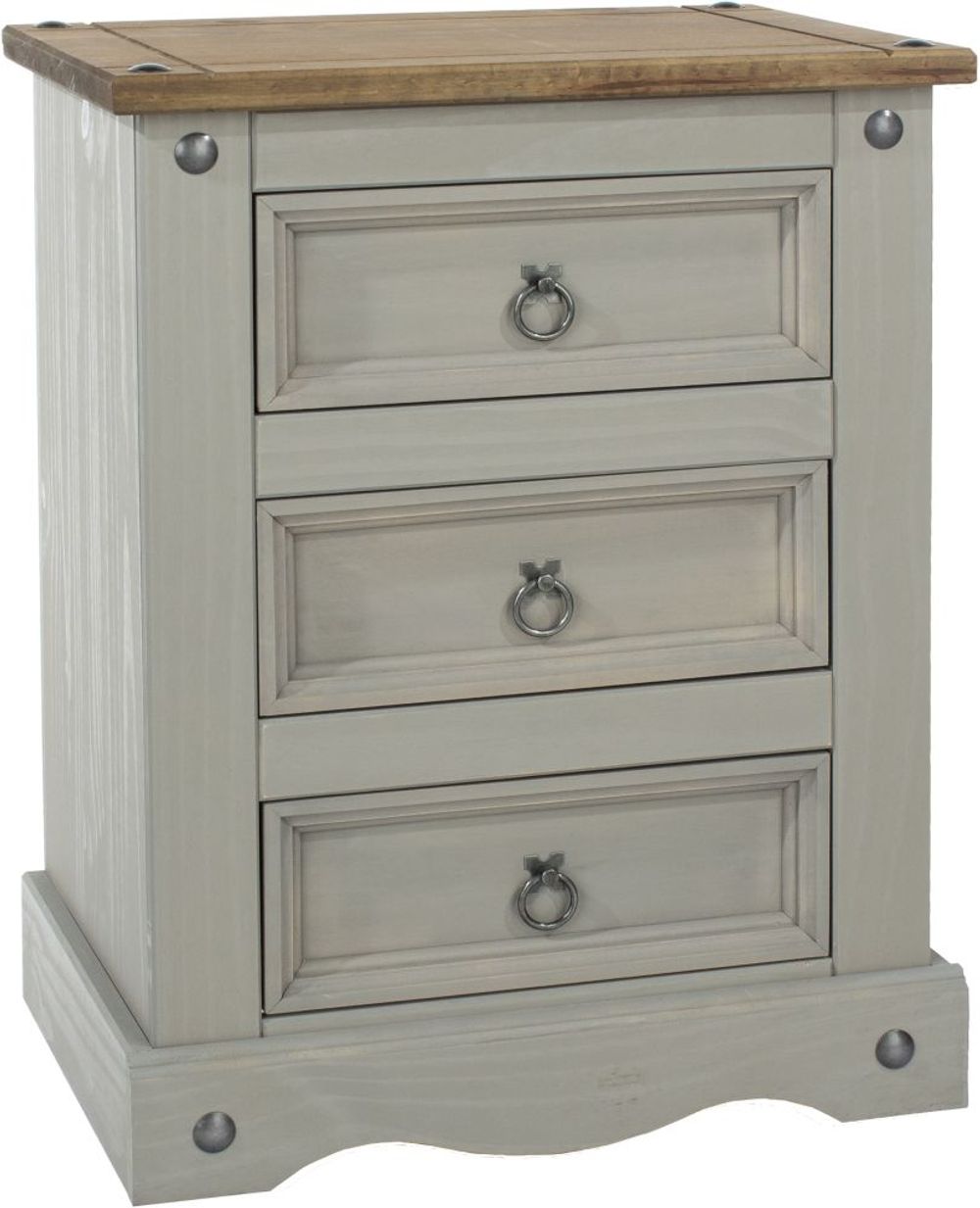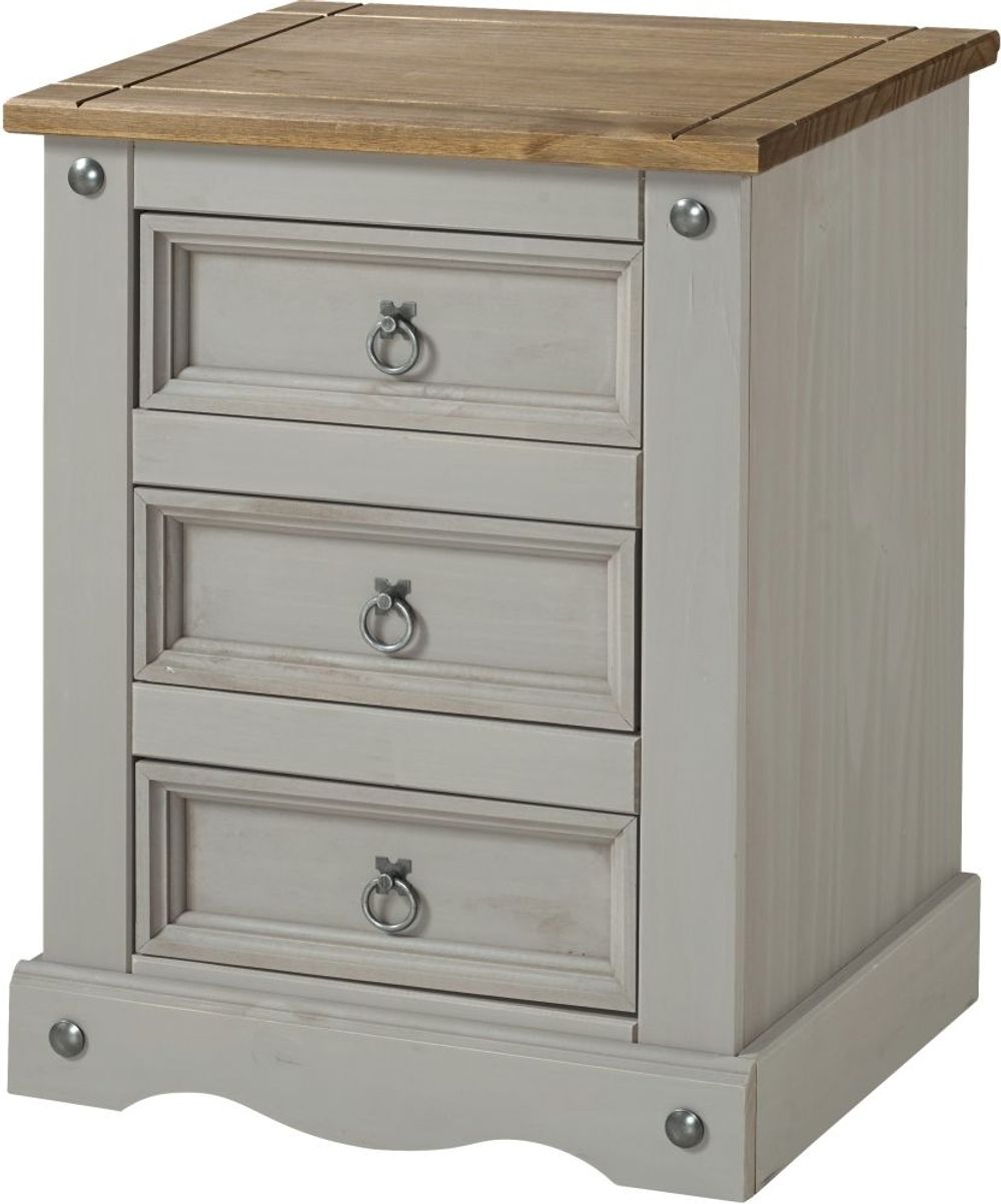 Corona Grey Mexican Pine 3 Drawer Bedside Cabinet