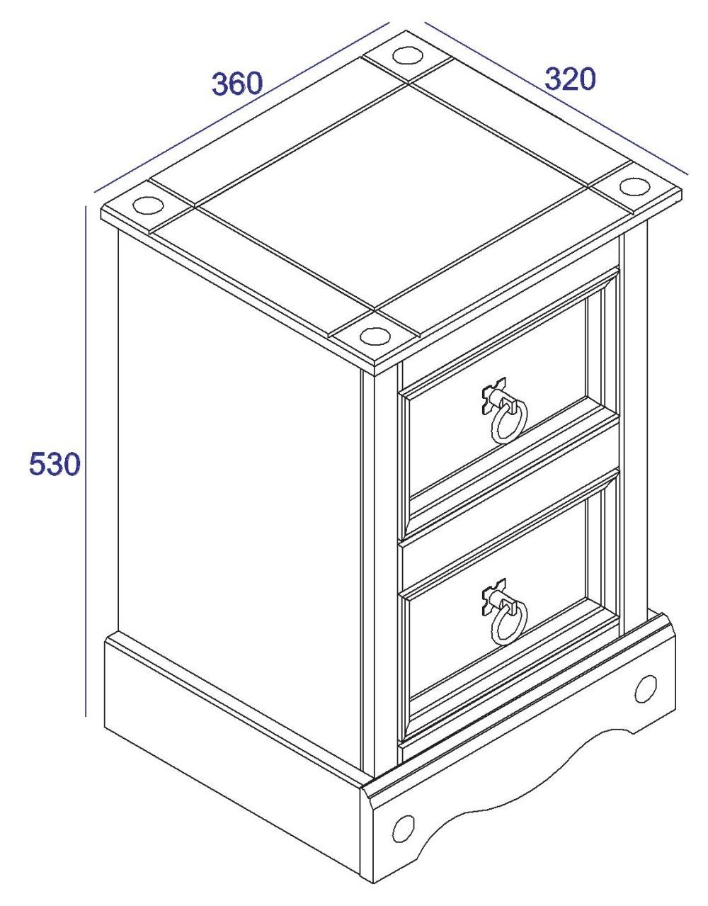 Corona Pine Mexican 2 Drawer Petite Bedside Cabinet