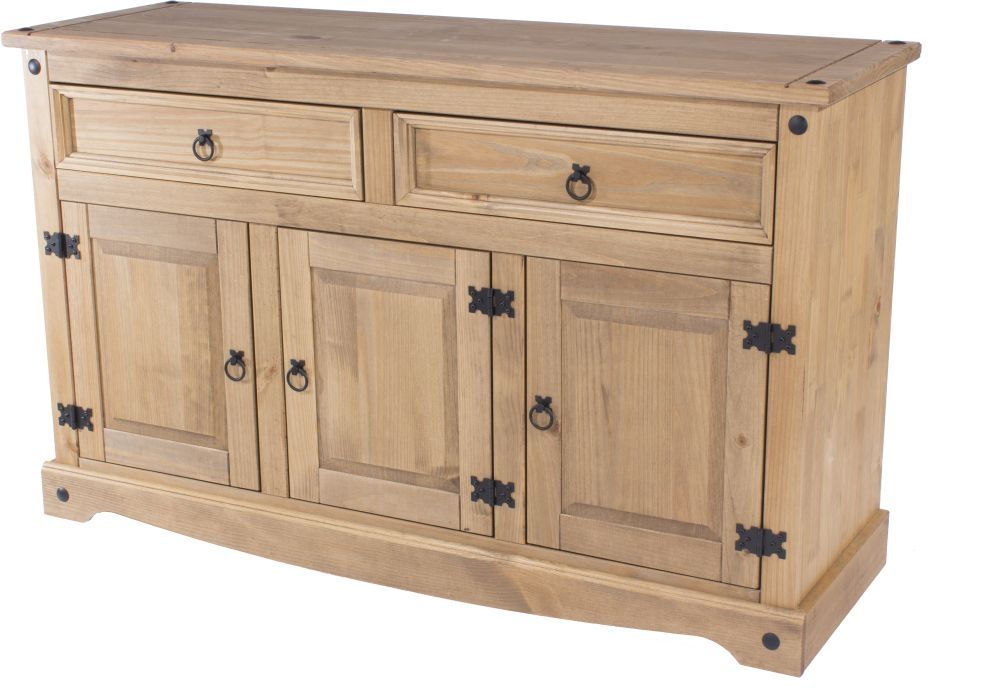 Item Code: CR916 This sideboard is crafted from solid pine with a hand finished waxed finish and an authentic Mexican style finish. It features two drawers and two cupboard doors for storage and a shelved interior inside one cupboard to organize items. It exudes classic and rustic design, perfect for both traditional and more contemporary homes. Robust and stylish, it offers ample storage and an eye-catching center-piece for any room.