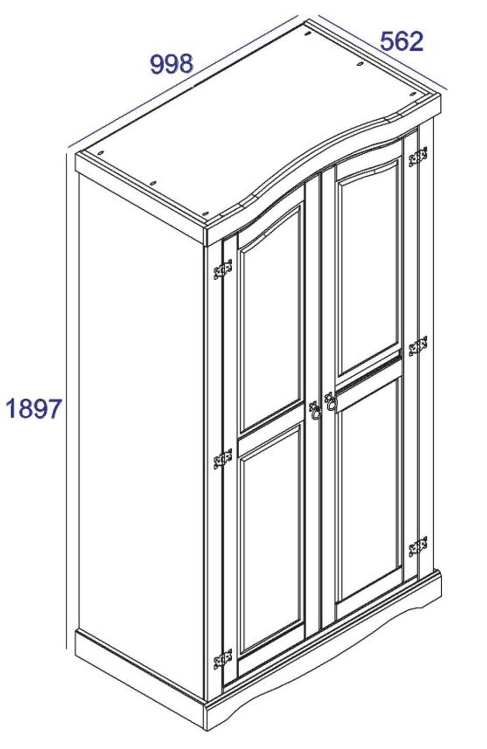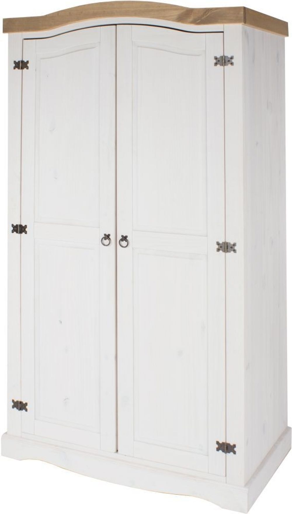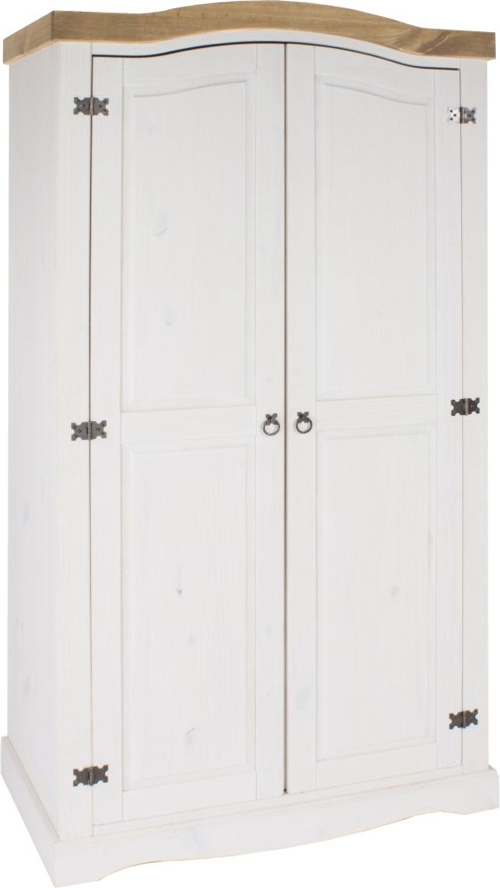 Item Code: CRW120 This 2 door wardrobe is constructed from white Mexican Pine to provide a classic look that will fit into any style of home. It comes with metal handles and unglazed doors and is flat packed for easy assembly. Perfect for bedroom storage, it has adjustable shelves for maximum storage and organisation.