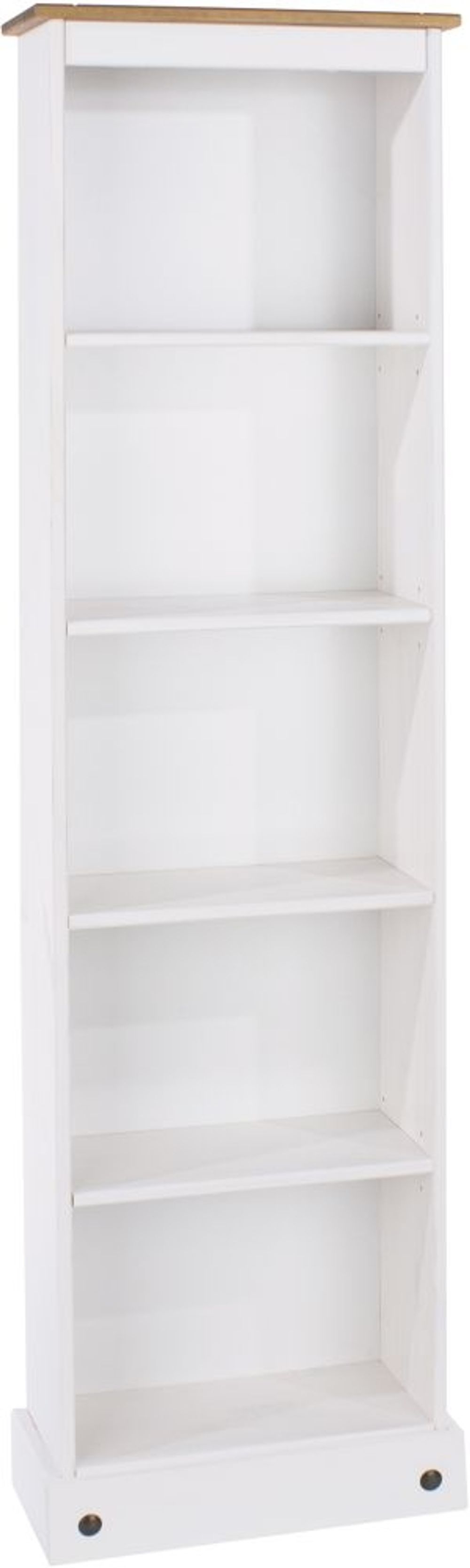 Item Code: CRW746 This tall and narrow bookcase is constructed of Mexican pine, finished in an attractive, neutral white. Perfect for adding storage space and displaying smaller knick-knacks, this piece is great for most spaces, big or small. The flat-packed design makes it easy to assemble.
