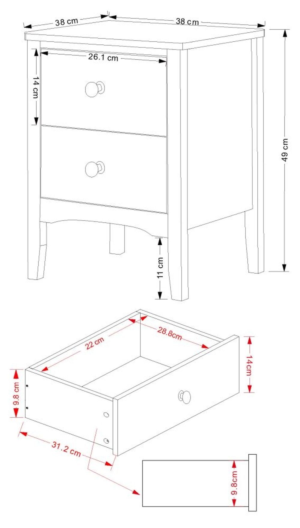 Item Code: CMB509 This petite bedside cabinet is the perfect addition to any home décor. With two handy drawers and a classic design, it has the perfect mix of style and practicality. The flat-packed design makes it easy to assemble and the solid construction ensures longevity and sturdiness. With its timeless design and ample storage, this is both a multifunctional and stylish choice.