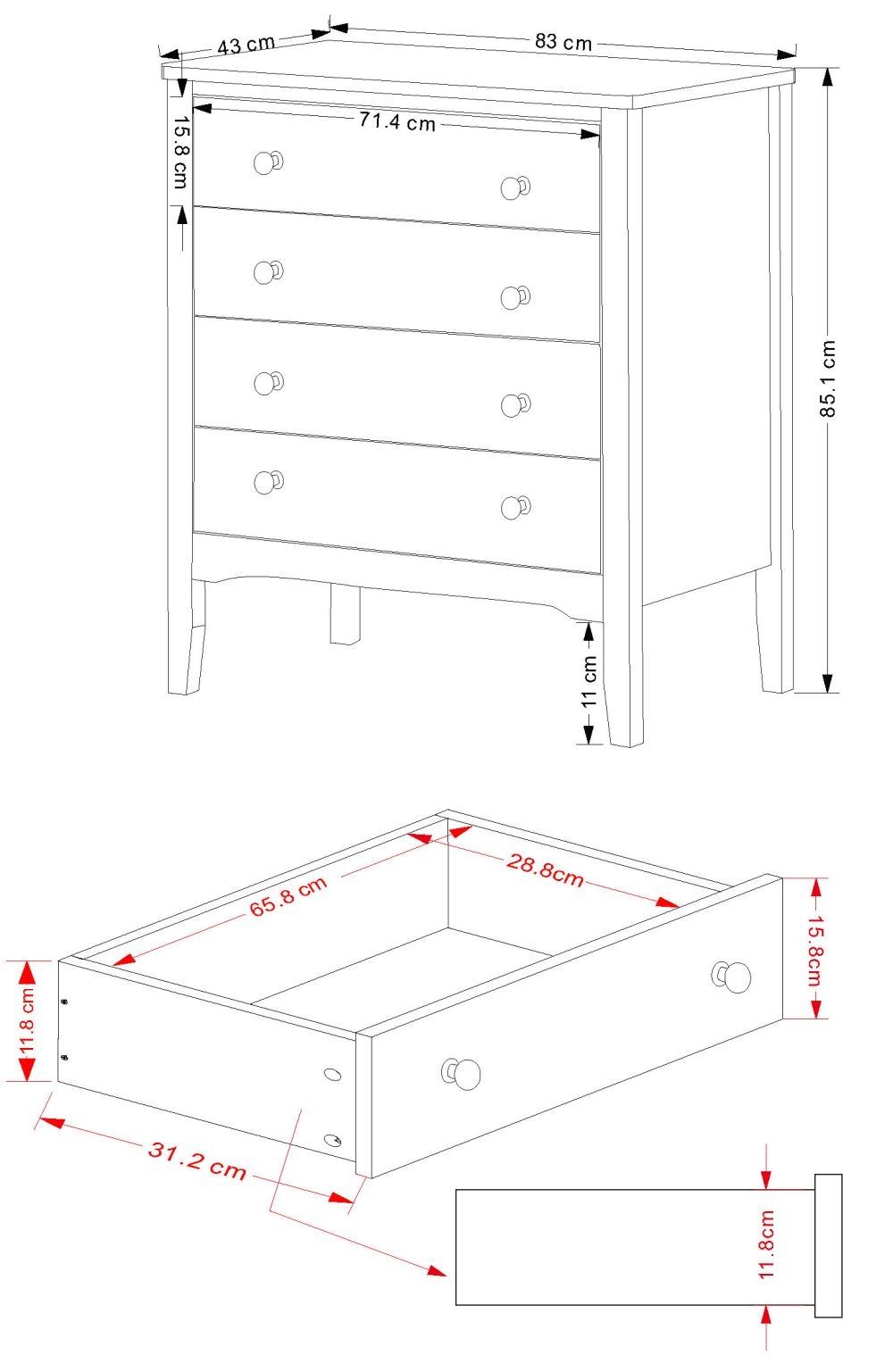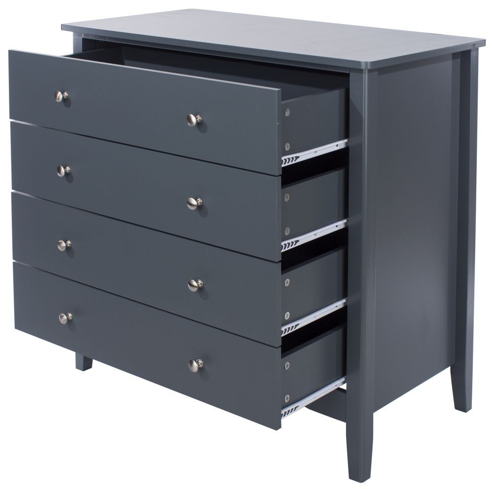 Item Code: CMB514 This stylish 4 drawer chest adds spacious storage to any room. Featuring a contemporary design, this piece is expertly crafted of durable wood and finished in a rich blue hue. Its drawers open and close smoothly, allowing for easy access to the contents. The flat packed design makes for easy assembly and makes it perfect for any home.
