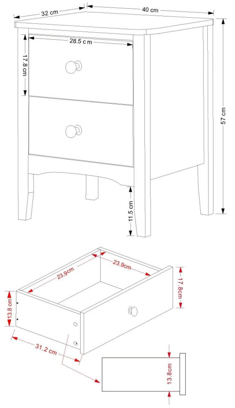 Como Grey Painted 2 Drawer Bedside Cabinet
