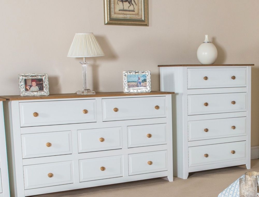 Item Code: CP314 The stunning fusion between solid wood and white is the hallmark of this classic range. The clean arctic white finish contrasts beautifully with the antique wax finished solid pine tops, mouldings and handles. Quality of finish is paramount.