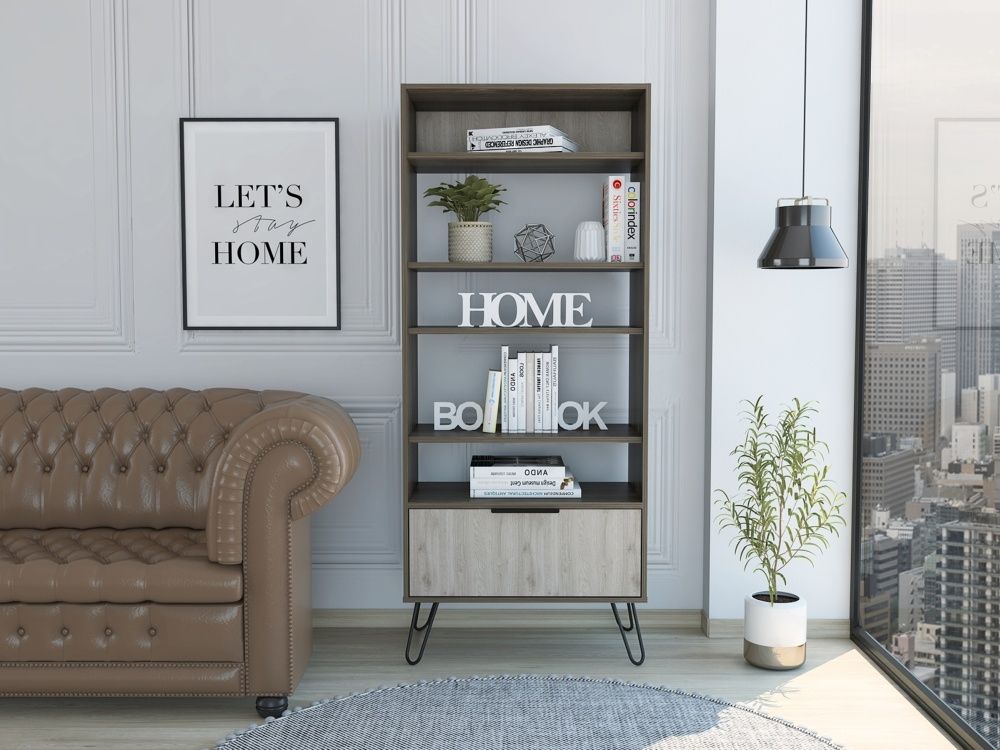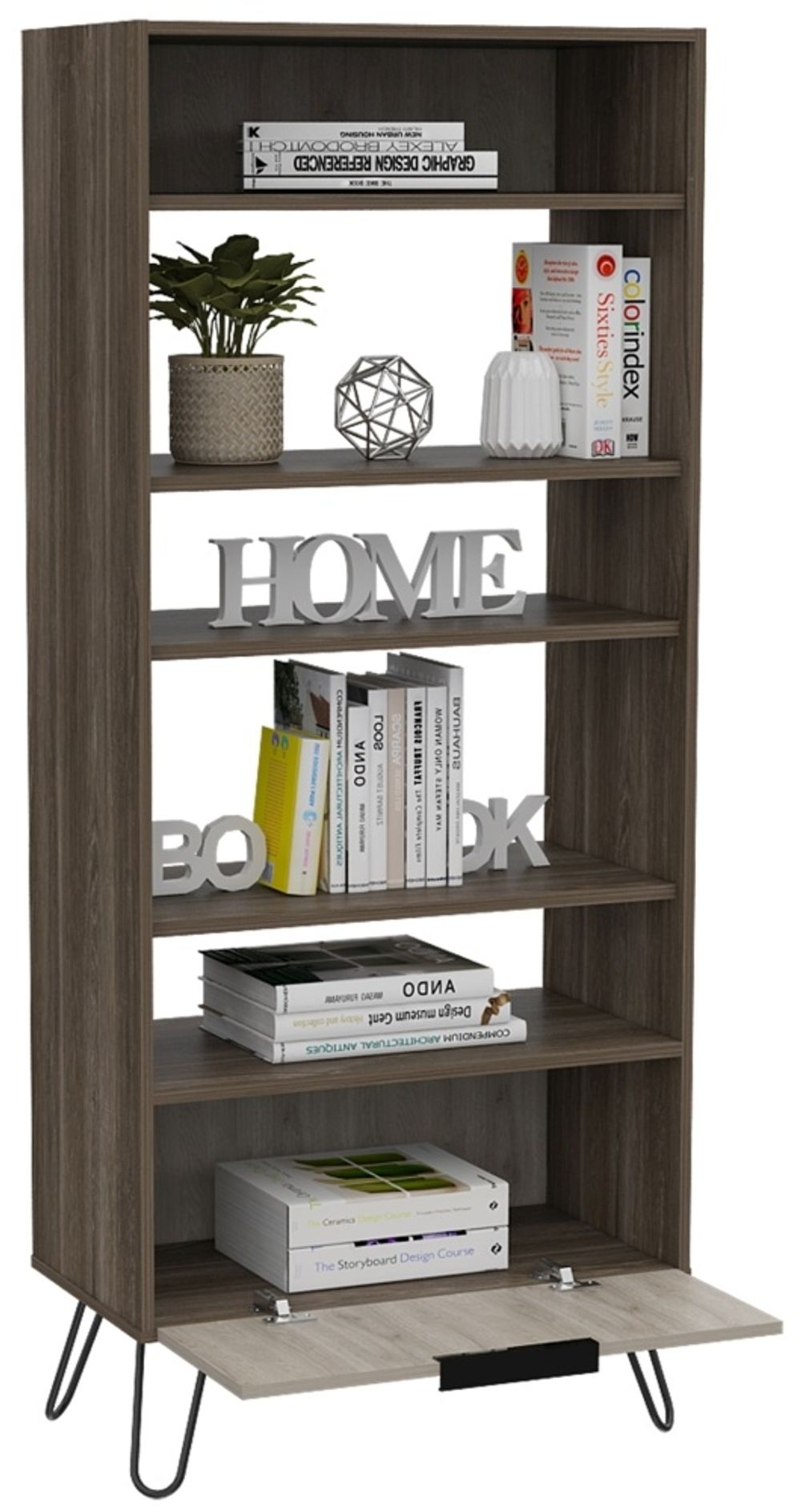 Nevada Grey Oak Effect Bookcase with Hairpin Legs