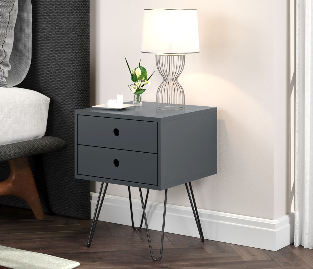 Options Blue 2 Drawer Bedside Cabinet with Hairpin Legs