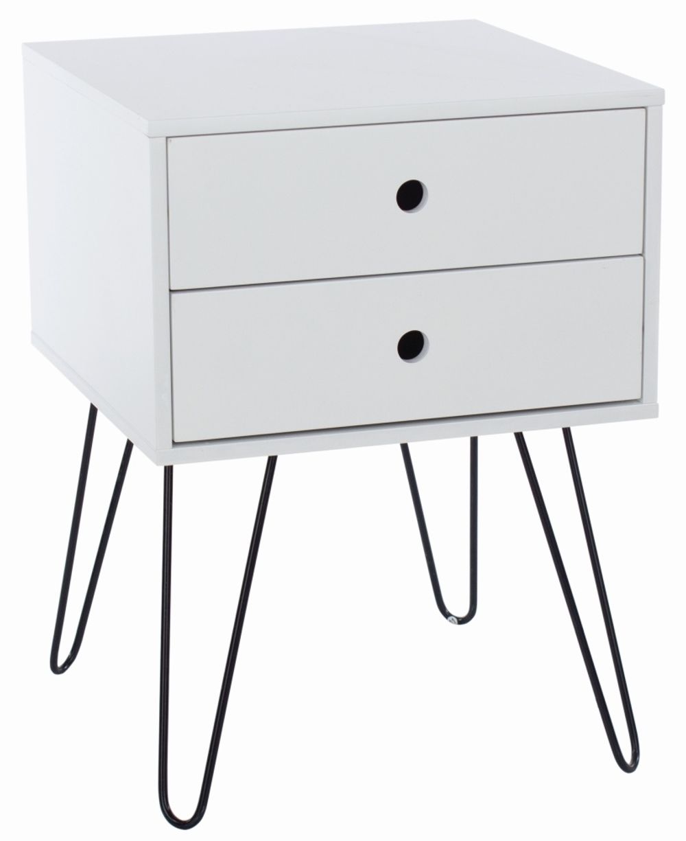 Options White 2 Drawer Bedside Cabinet with Hairpin Legs
