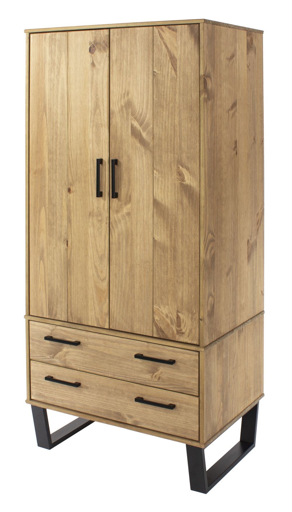 Texas Industrial Style Oak Effect 2 Door 2 Drawer Wardrobe