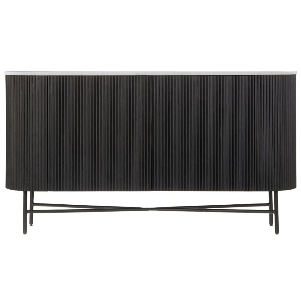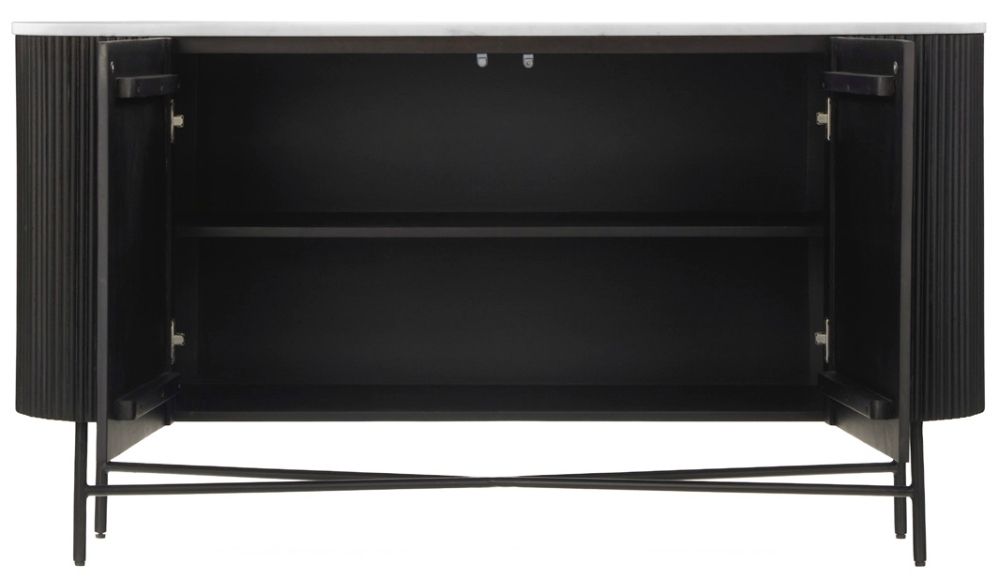 Lucas Black Sideboard - 150cm Medium 2 Door Fluted Curved - White Marble Top