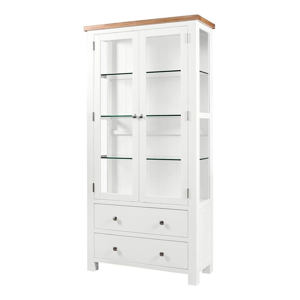 Designed with two glass-front doors, this display cabinet provides a perfect space to showcase your favourite items—from fine china and glassware to treasured collectables. Inside, adjustable shelves offer flexible storage to suit your needs. Available also in Ivory and Moon Grey painted finishes, this cabinet lets you choose the ideal tone for your home.