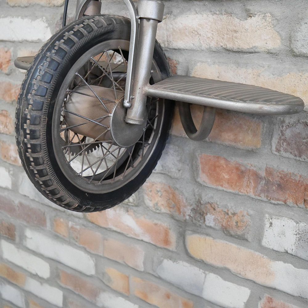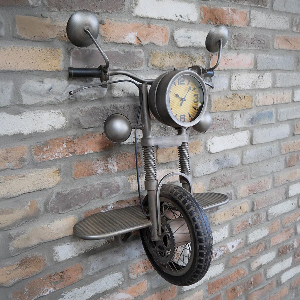 Motorcycle Wall Clock - Grey Metal - Mounted