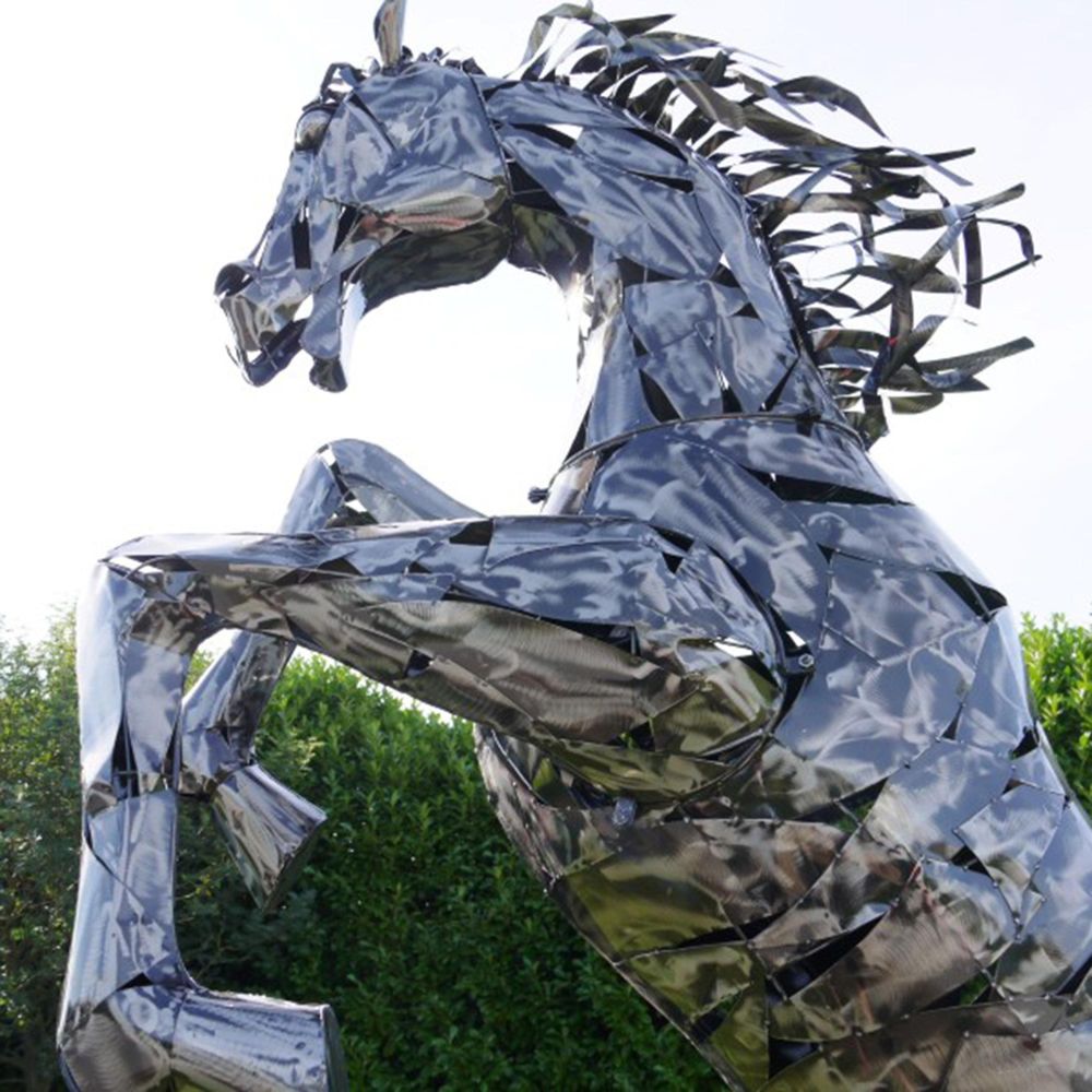 Silver Metal Large Rearing Horse Statue