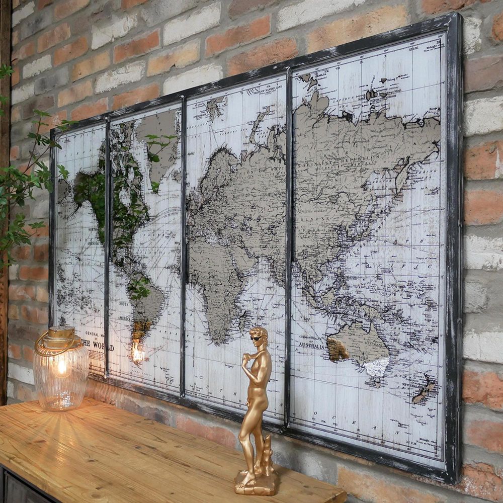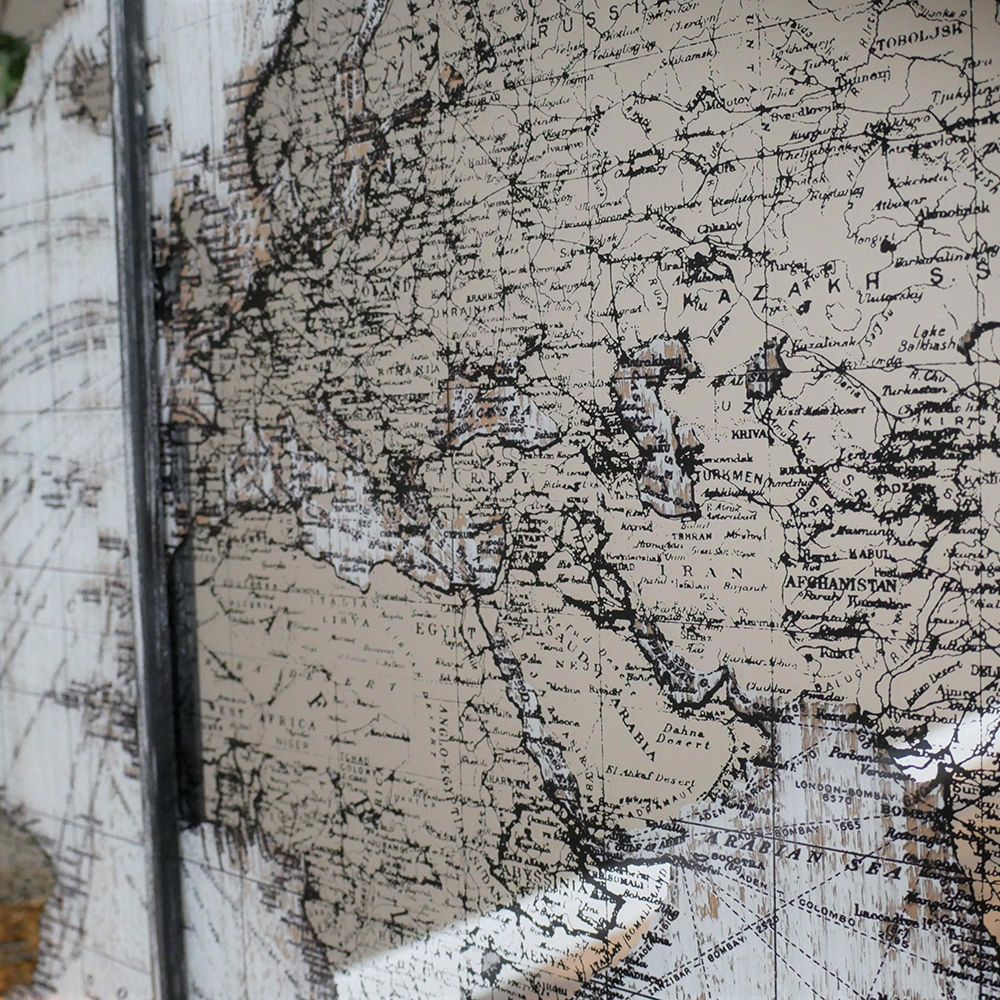 Wide Map Wall Mirror - Metal