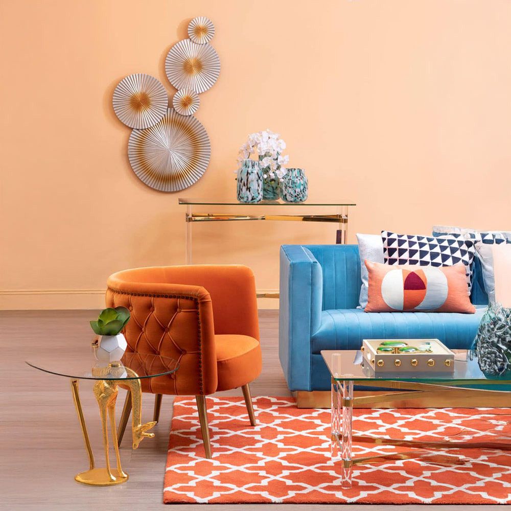Item Code: 5501663 The Clarence console table features clear acrylic legs and tempered glass design tabletop.Two metal cross elements connect the Clarence console table's four legs and create a luxurious statement. The cylindrical legs are created from clear acrylic and complement the transparent appearance of the tempered glass top. Coordinate with warm metallic furniture and accessories for a contemporary look.