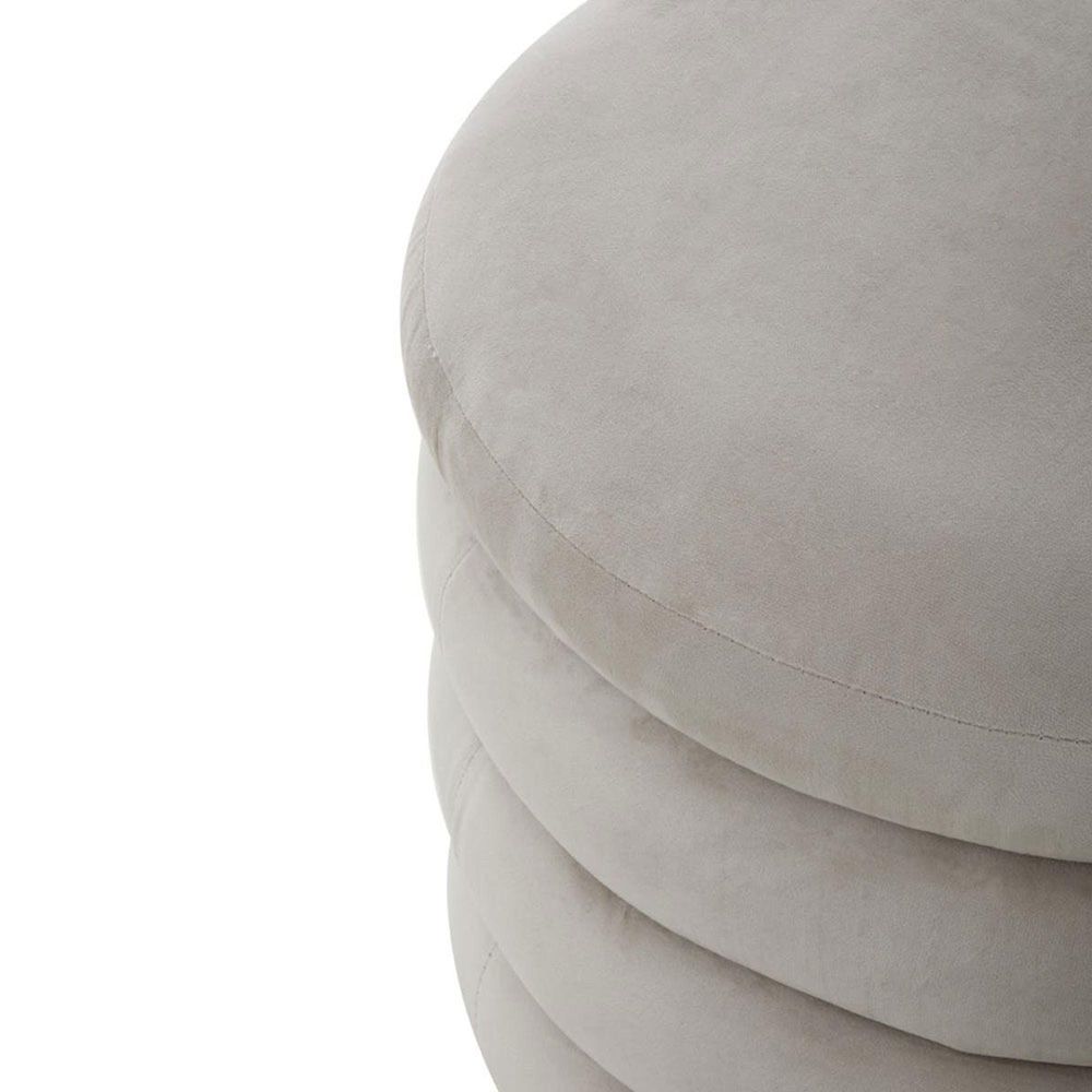 Item Code: 5528665 Featuring a plush cream velvet upholstery, this round footstool will make a luxurious addition to a wide range of interiors.This round footstool is upholstered in a soft cream velvet, offering a touch of understated elegance and comfort. Its circular shape, tiered design and plush texture make it a versatile piece, suitable for use as seating or a footrest. The velvet adds a subtle sophistication, blending seamlessly with various decor styles.