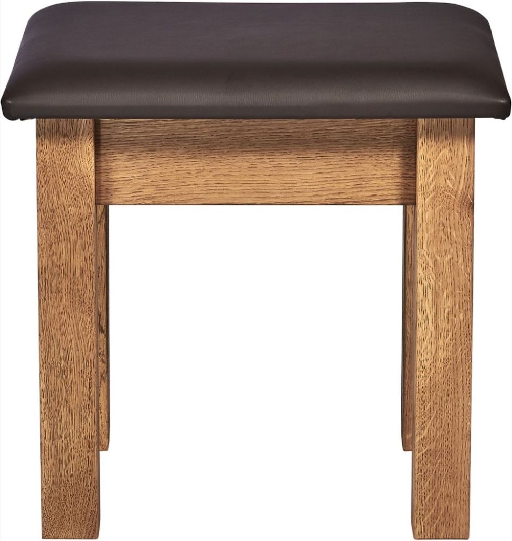 Item Code: SOS10 The Kent dressing table stool is the perfect accompaniment to the matching dressing table. With sturdy legs and a comfy, dark tan cushion seat, this stool provides a stylish and practical place to gtet ready. Made of solid white American oak with a brushed oil finish, the stool is a long-lasting and hard-wearing piece of furniture. Sturdy legs and a wide frame ensure that weight is distributed evenly so that the stool will not start to wobble or buckle.