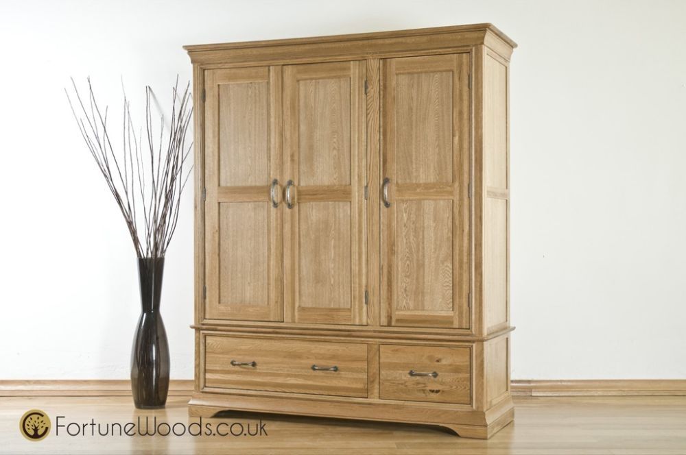 Item Code: FRW3 If you have more clothes than you know what to do with, consider purchasing a Lyon triple wardrobe. With a warm lacquer finish and exquisite detailing, this wardrobe makes a stunning addition to any room. Lovingly made by hand from pure American White Oak, traditional methods including tongue and groove backs are used to ensure that this item is durable and hard-wearing. The lacquer finish means you will not need to worry about re-waxing. You only need to dust or polish the Lyon Triple Wardrobe alongside other items of furniture. For an air of French fancy, invest in a Lyon wardrobe for your bedroom today.