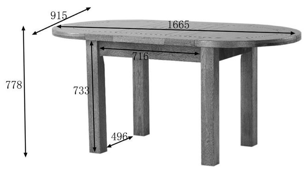 Originals Rustic Oak Oval Large 4-6 Seater Extending Dining Table - 131.5cm-166.5cm