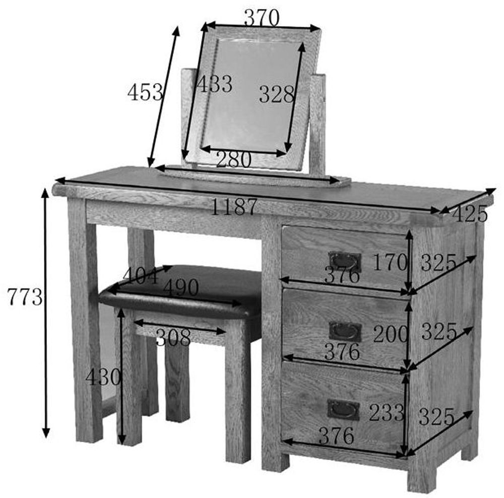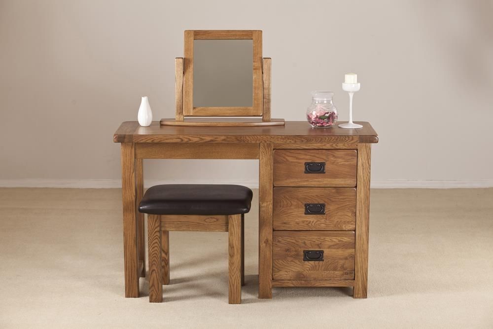 Item Code: SRDD25 The Originals Rustic single pedestal dressing table is a splendidly designed dressing table with three drawers that provide an ample amount of storage. Elegant, with a traditional feel, it is handmade from premium, hard-wearing American White Oak and comes supplied in a lacquered Originals Rustic finish. An ideal choice for any bedroom, the table has dovetailed jointed drawers and tongue and groove backs and bases.