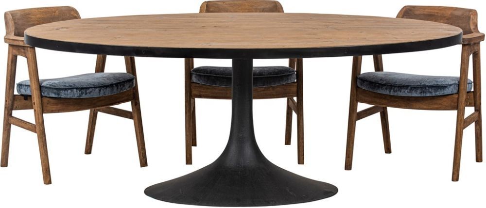 Revival Reclaimed Pine and Black Metal Flute Base Large Oval Dining Table - 6 Seater
