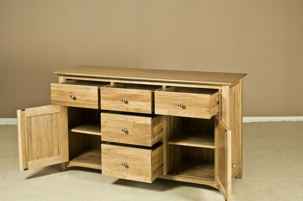 Item Code: TNS40 Light, lacquered finish oak 4'6" dresser base with 5 drawers.