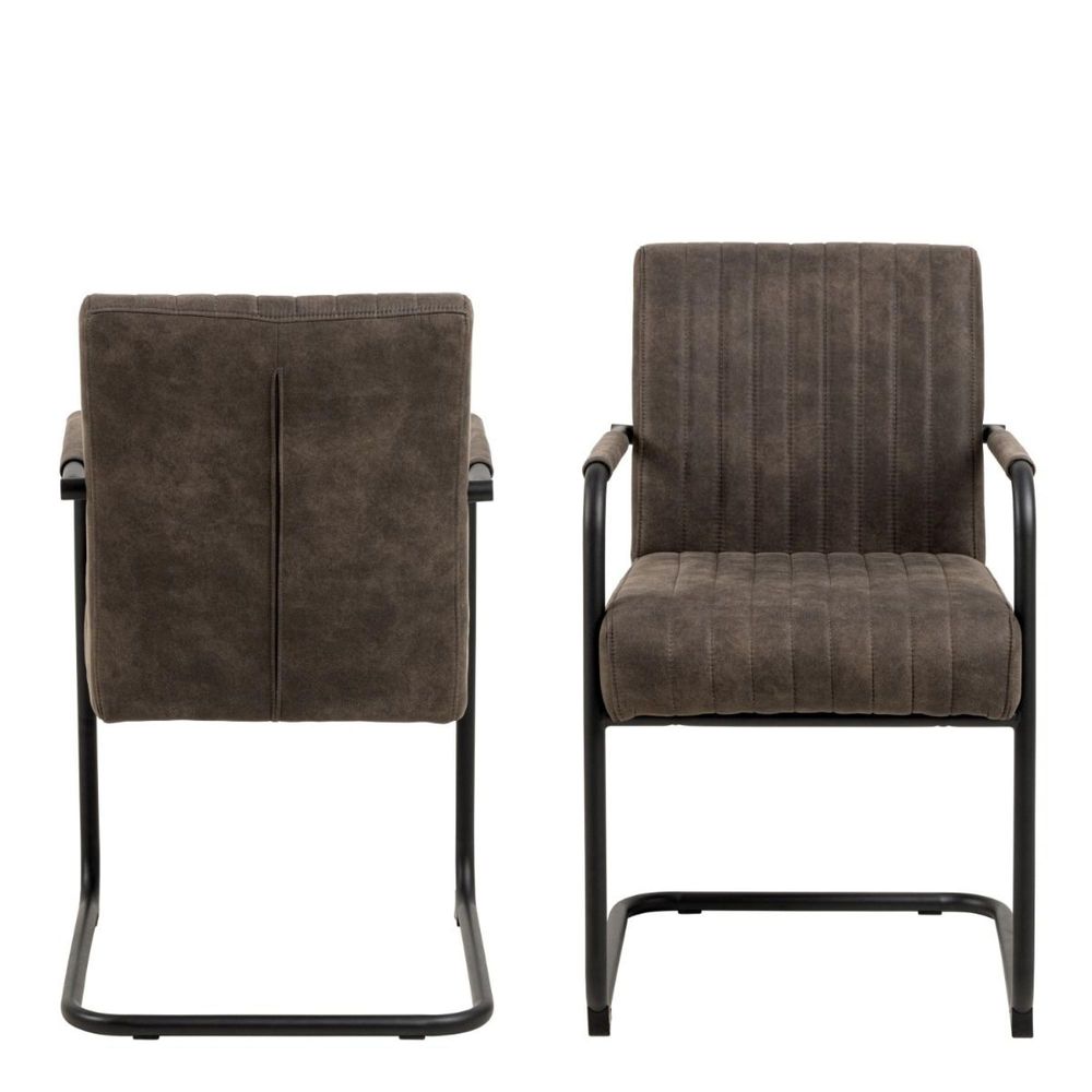 Item Code: 90A0000101546 Infusing retro flair into your space, this dining chair with armrests promises to elevate any home's style. Its robust Black swing metal base perfectly complements the anthracite microfiber fabric, which features a special coating for a raw, edgy appearance. Plus, the seat's pocket Bailey ensure lasting comfort during those post-dinner conversations.