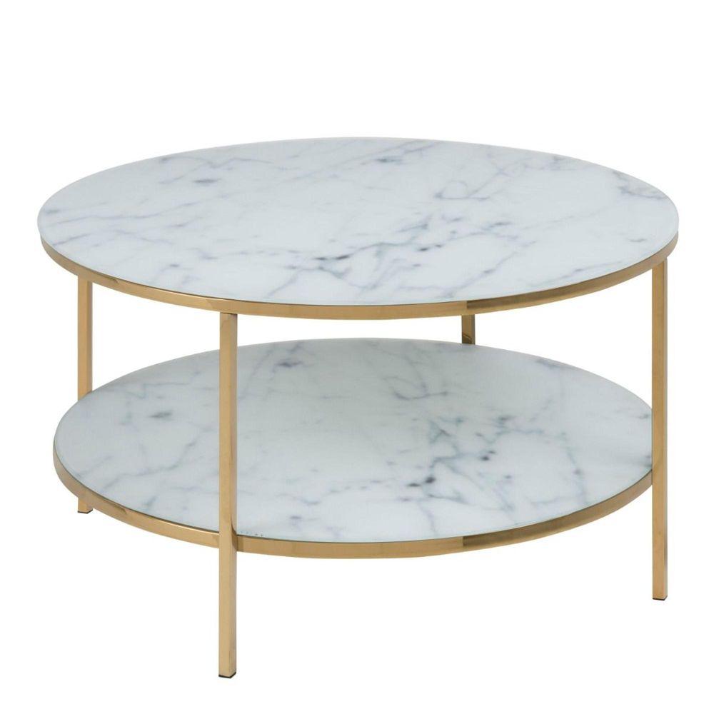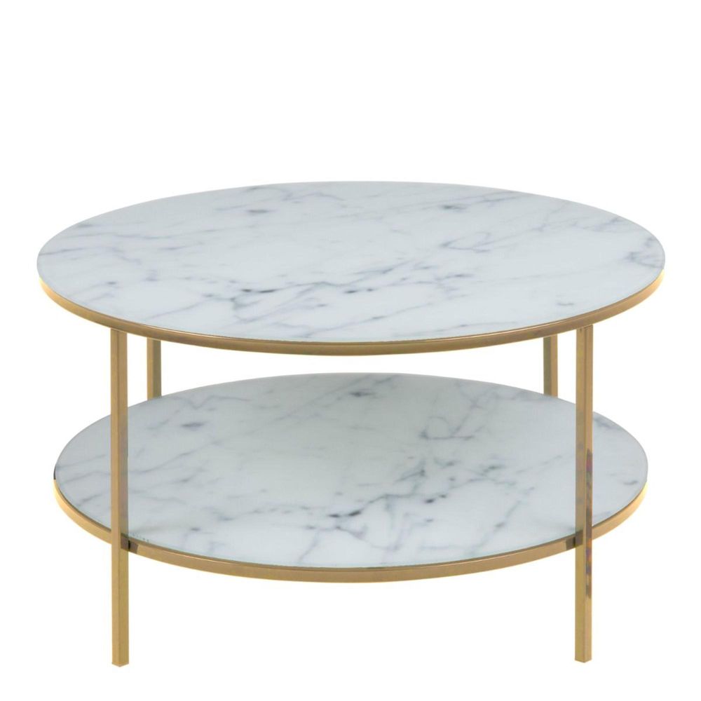 Alisma White Marble Effect Round Coffee Table with Shelf