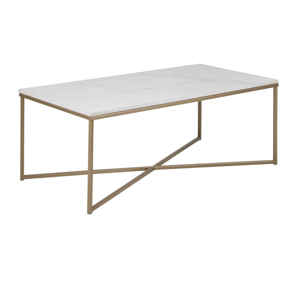 Item Code: 90AH000017128 Combining modernity with strength, this coffee table makes a bold statement. A crossed metal base extends to form a supportive frame around the marble tabletop. The meticulously chosen materials ensure both durability and easy maintenance.