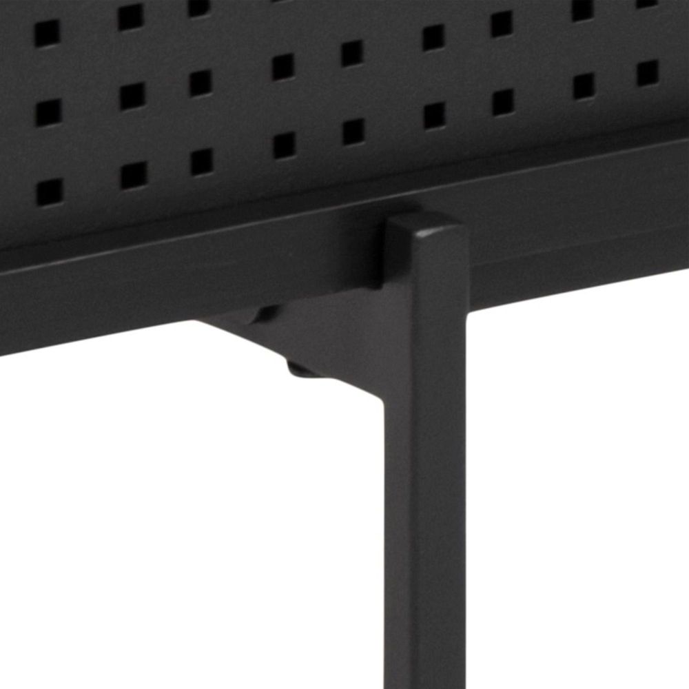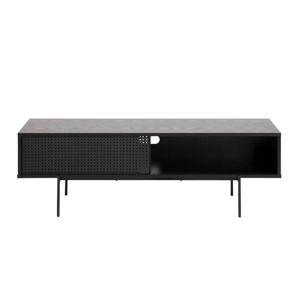 Item Code: 90A0000090711 Defined by its clean lines and lightweight design, this TV stand in Black ash brings a cool, modern vibe to any living area. Sturdy powder-coated metal legs provide support to the TV table, ensuring stability and easy cleaning. Take note of the mesh sliding doors, which not only add a stylish touch but also offer ample storage space, enhancing the unit's functionality.