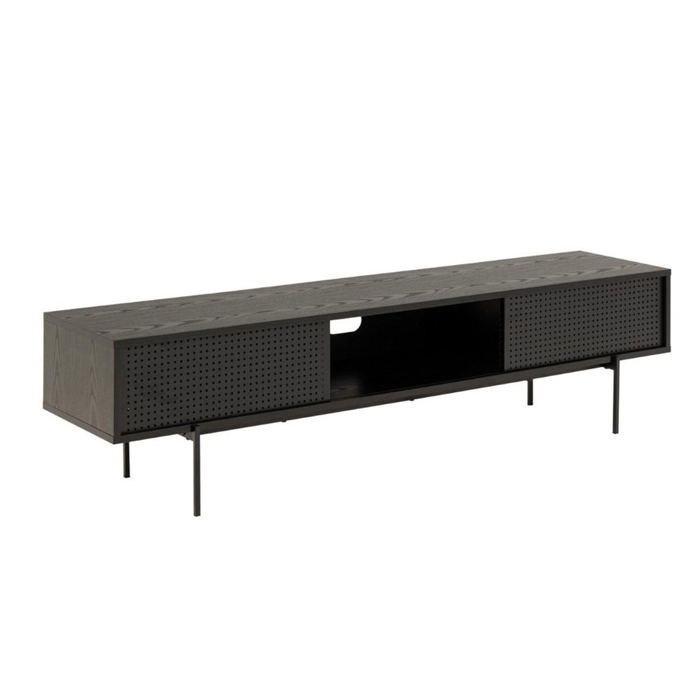 Item Code: 90A0000097467 With its clean lines and sleek profile, this TV unit in a Black ash finish adds a cool, contemporary touch to any living space. Sturdy powder-coated metal legs provide support to the TV table, ensuring stability. Take note of the mesh sliding doors, a thoughtful addition that enhances the design.