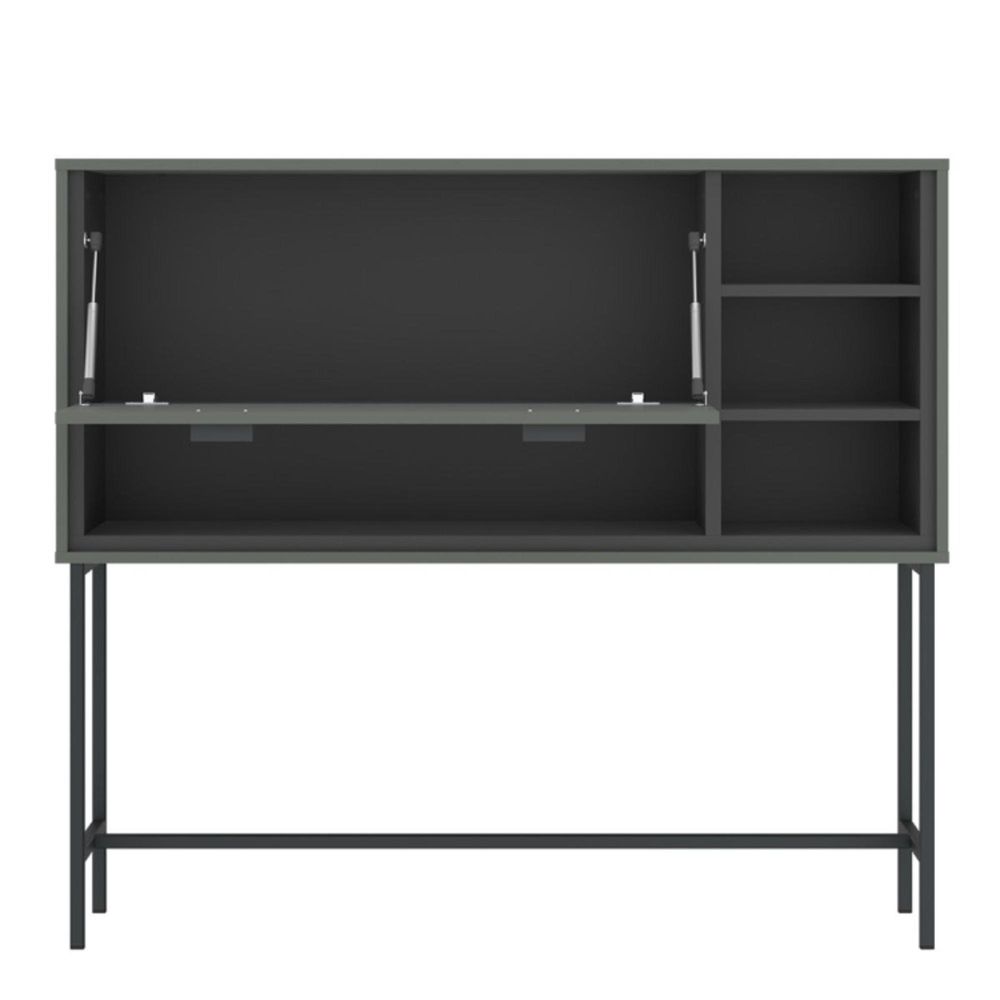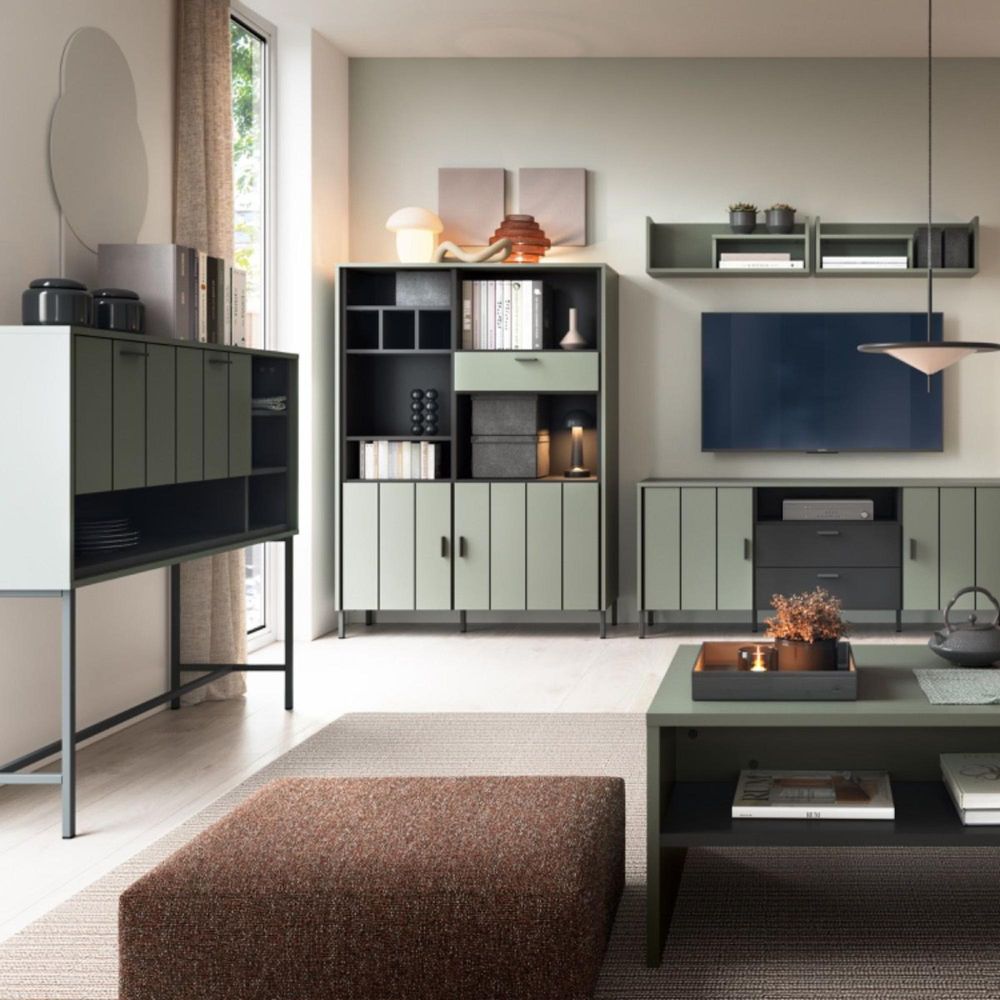 Item Code: 4W616738 Elevate your space with the Arundel Grey Green Bar Table. Featuring a chic grey-green shade with anthracite accents, it combines a sleek metal base and functional top flap with open shelves. Ideal for modern, industrial, vintage, or eclectic interiors, it adds elegance and versatility to any living or dining room.