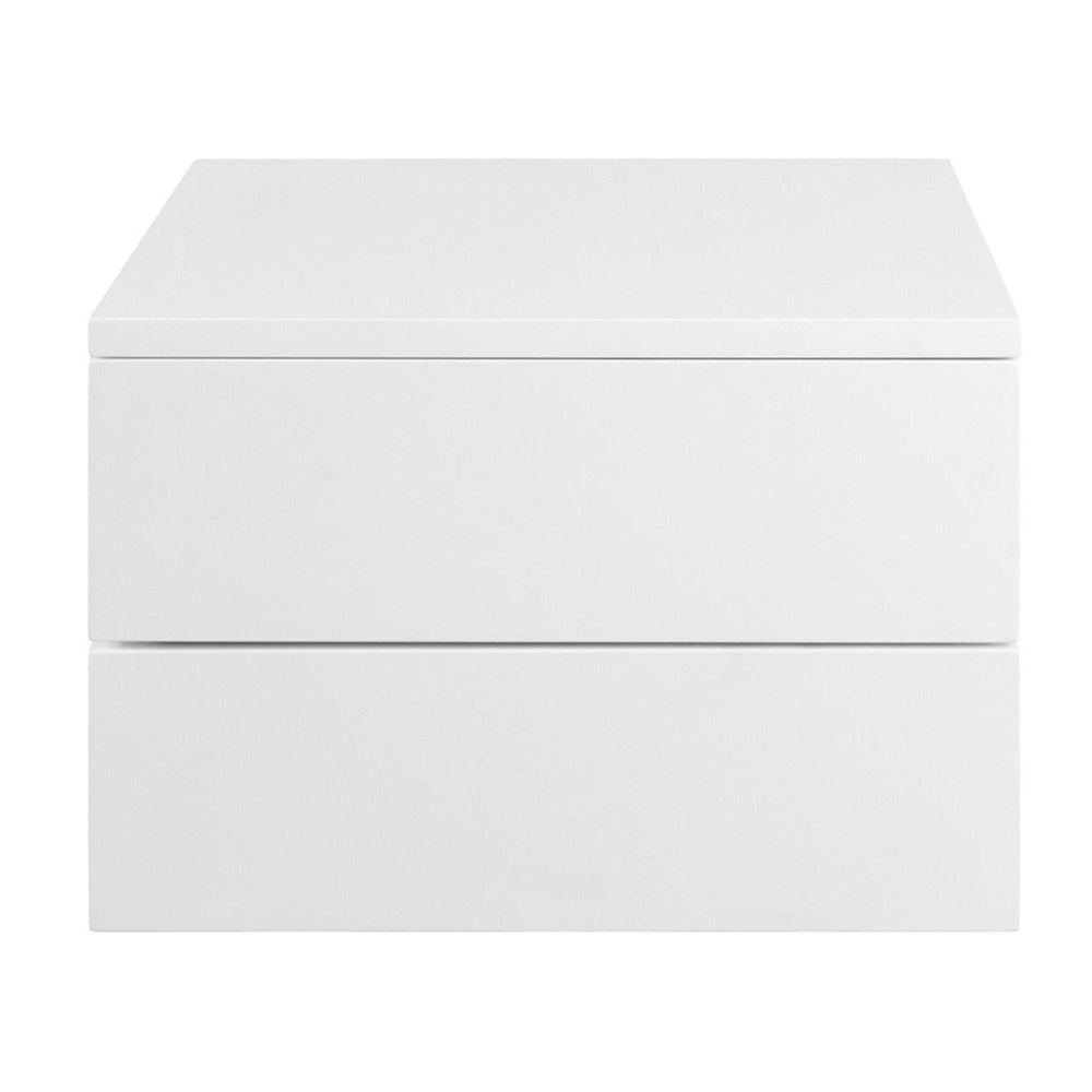 Item Code: 90A0000095760 Elevate your bedside storage. Featuring a top and two drawers crafted from white painted MDF, this piece offers both style and functionality. Equipped with metal runners and wall mounting capability, it maximizes space efficiency in your bedroom.