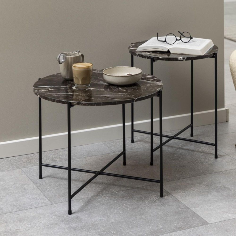 Avila Brown Marble Round Side Table