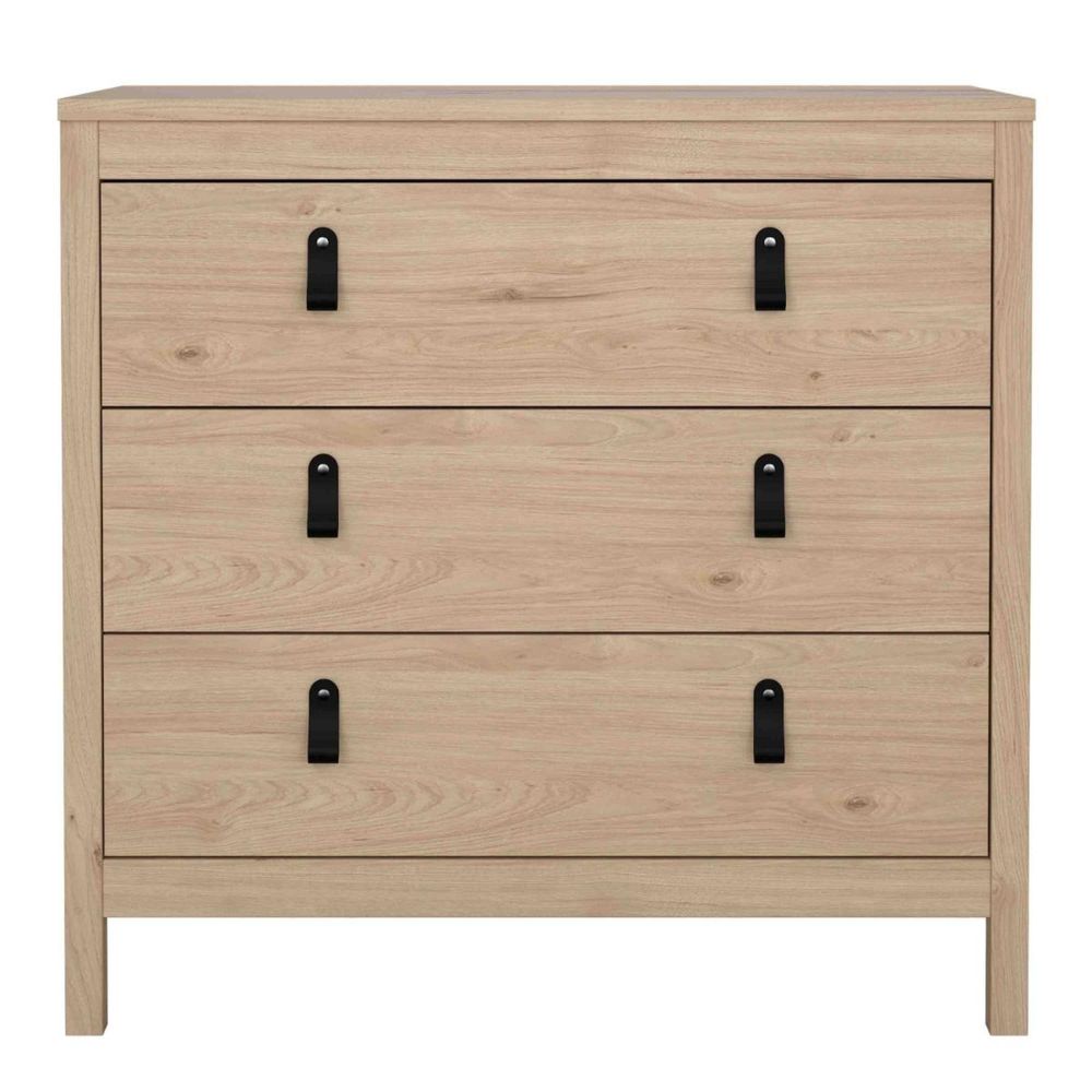 Item Code: 72579662hlhl Enhance your bedroom with the stylishBarcelona Chest. Featuring a Jackson Hickory Oak effect finish, this chest offers three spacious drawers for ample storage. Each drawer is equipped with leather strap handles and smooth gliding runners, ensuring easy access. Combining elegance and practicality, theBarcelona Chest is a perfect addition to any contemporary bedroom.