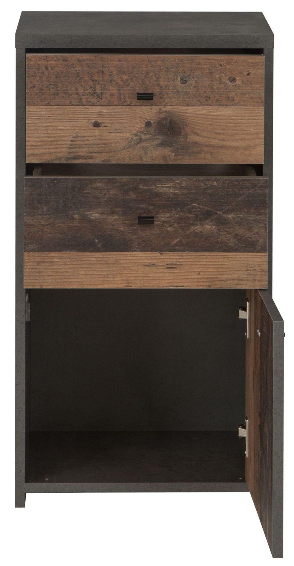 Best Grey Concrete Effect and Vintage Wood 2 Drawer 1 Door Cabinet