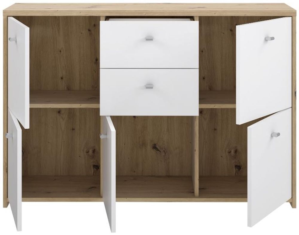 Best Oak and White 2 Drawer 5 Door Wide Chest