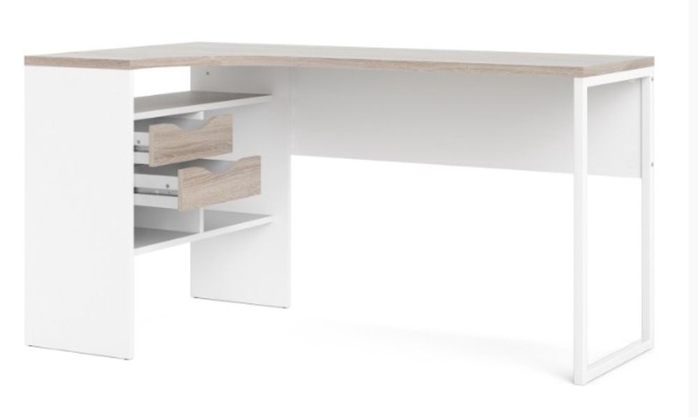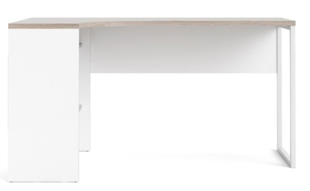 Function Plus White and Truffle Oak Effect 2 Drawer Corner Desk