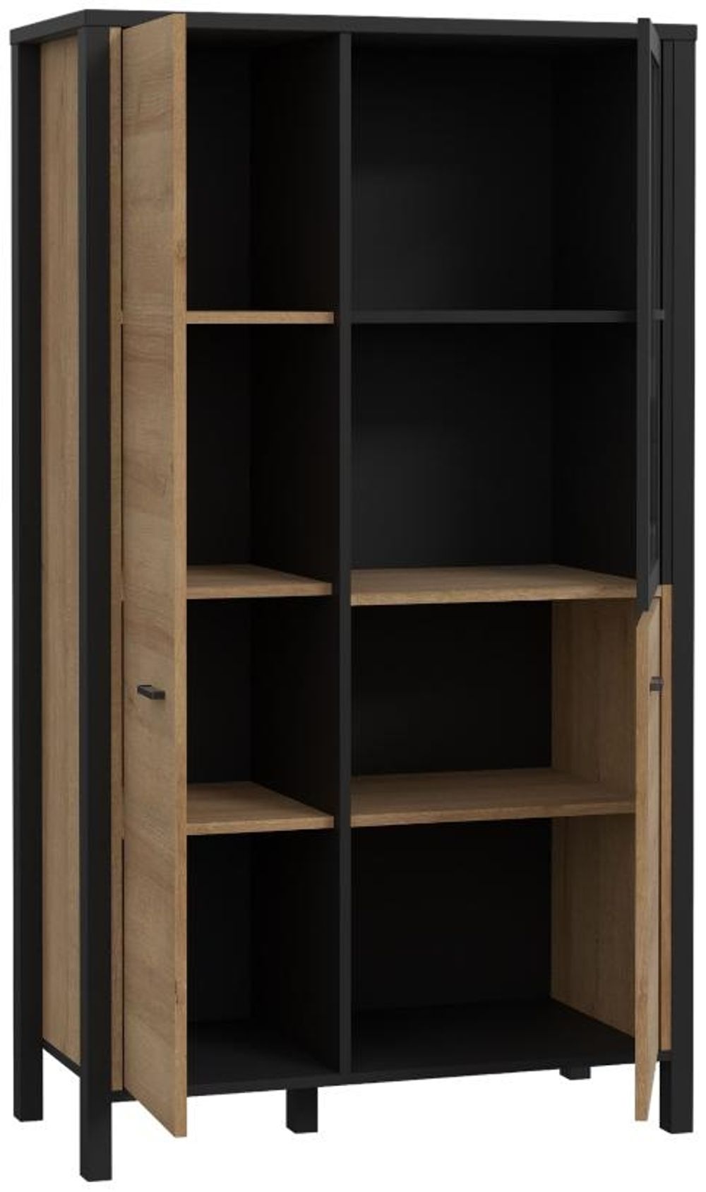 High Rock, a captivating and contemporary collection which has a perfect blend of the Riviera Oak decor with deep black accents, this collection immediately captivates attention with its originality. The sleek black metal handles add a touch of elegance, while the tables boast robust metal legs in a frame-like design, contributing to a distinct loft character within the space. Beyond its striking aesthetics, High Rock prioritises functionality with its ingenious storage solutions. Cabinets, chests of drawers, and display cabinets offer ample space to organise belongings, while the thoughtfully equipped tables come with practical drawers. This versatile collection effortlessly fits into any room, from the living room and dining area to the hall, youth room, or bedroom, adding a touch of sophistication and practicality to every corner of the home.