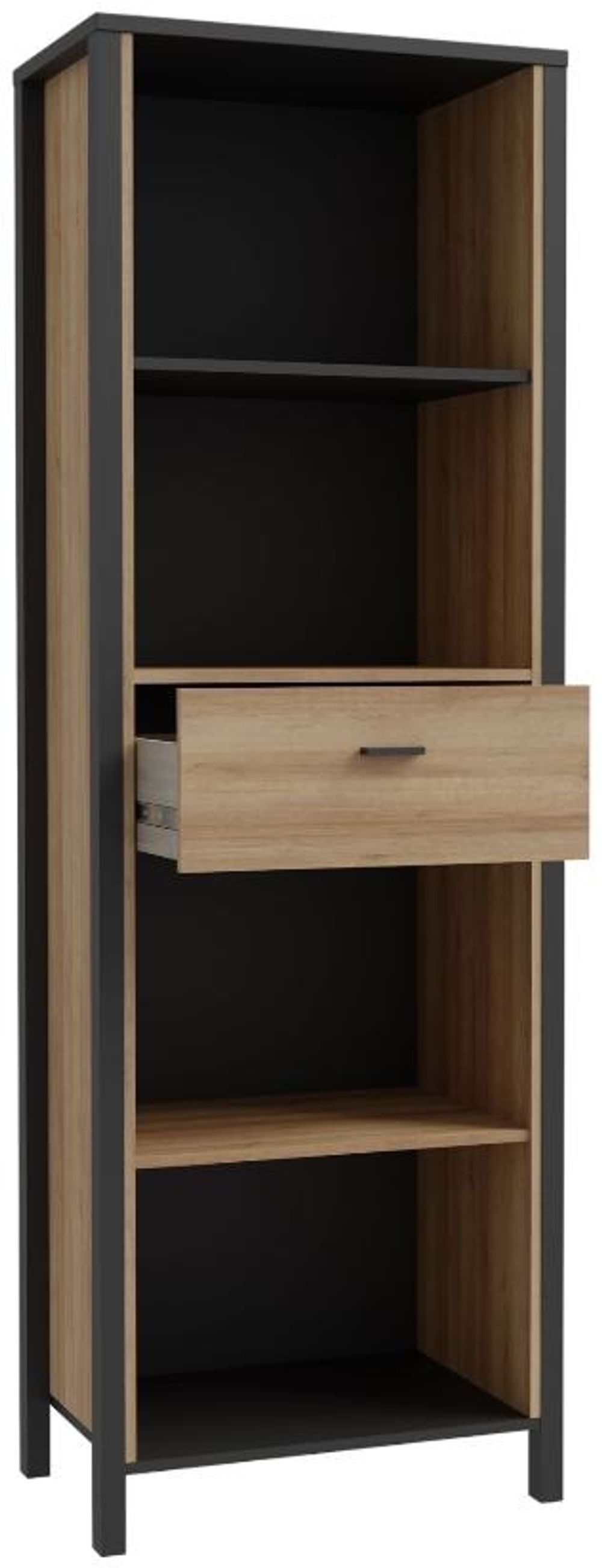 High Rock, a captivating and contemporary collection which has a perfect blend of the Riviera Oak decor with deep black accents, this collection immediately captivates attention with its originality. The sleek black metal handles add a touch of elegance, while the tables boast robust metal legs in a frame-like design, contributing to a distinct loft character within the space. Beyond its striking aesthetics, High Rock prioritises functionality with its ingenious storage solutions. Cabinets, chests of drawers, and display cabinets offer ample space to organise belongings, while the thoughtfully equipped tables come with practical drawers. This versatile collection effortlessly fits into any room, from the living room and dining area to the hall, youth room, or bedroom, adding a touch of sophistication and practicality to every corner of the home.