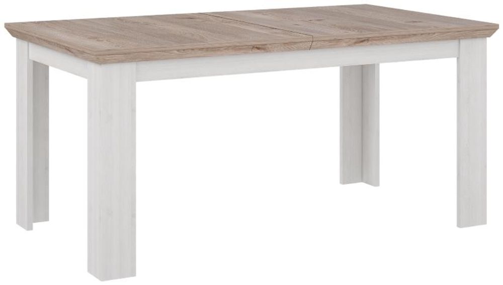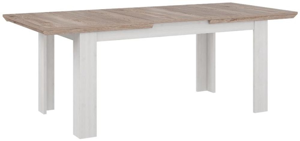 Illoppa Dining Table Extended in Oak Nelson/Snowy OakEnhance the ambiance of your home with the exquisiteIllopa collection, a seamless fit for any living space. Its most outstanding feature lies in the array of shapes it offers, granting you the freedom to artistically arrange every room in your house, from the inviting hall to the cozy living room. The captivating combination of beautiful white and oak effect top imbues your home with a sense of tranquility, fostering an atmosphere of relaxation and peace.