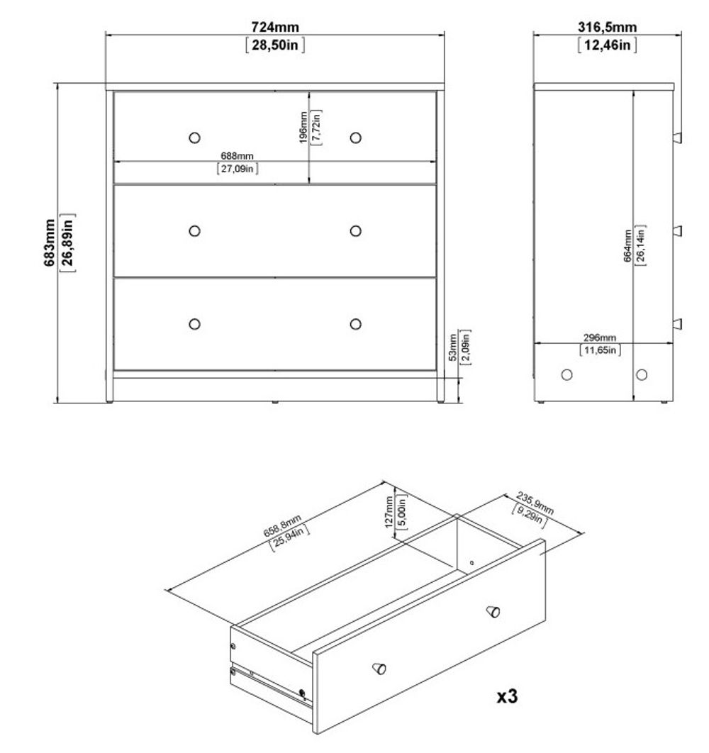May Oak Effect 3 Drawer Small Chest
