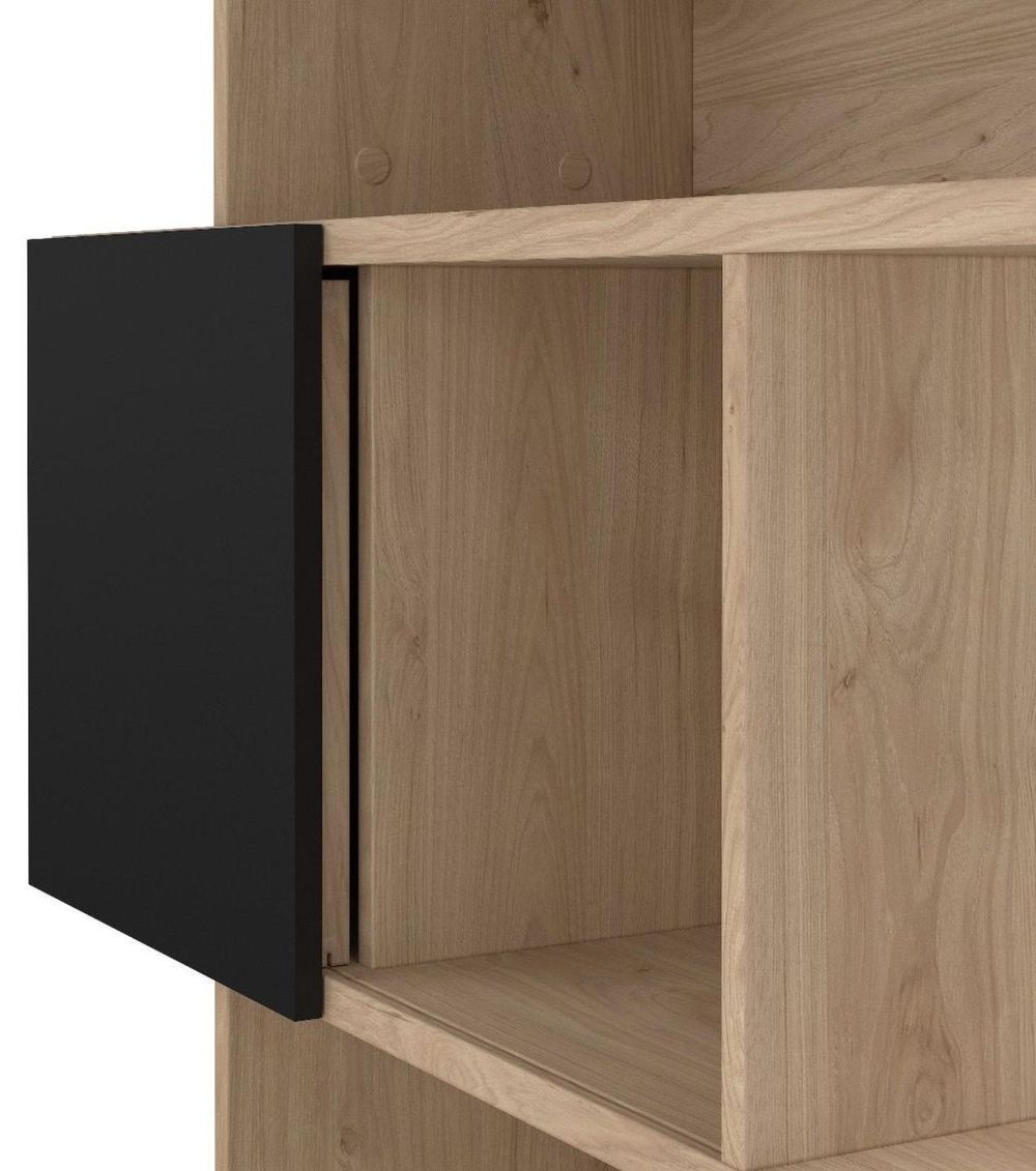 Item Code: 71471738hlgm Introducing the Emerald Open Bookcase a captivating addition that elevates your living space with its chic Jackson Hickory and Black finish. The asymmetrical design, two-tone colour palette, and spacious 4 shelves allow you to curate your unique showcase of cherished memories and decor pieces. This must-have bookcase exudes sophistication and enduring beauty, adding a touch of style to your home decor.