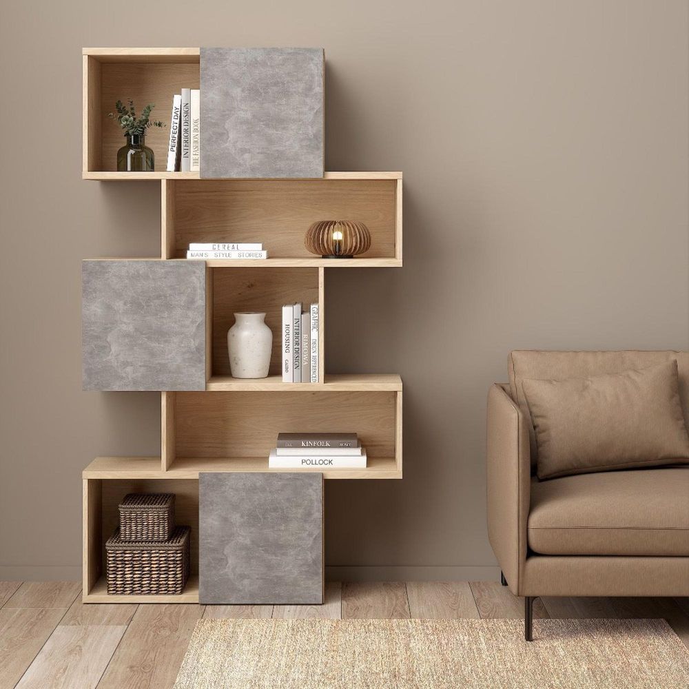 Maze Oak and Concrete Effect Asymmetrical Design Bookcase