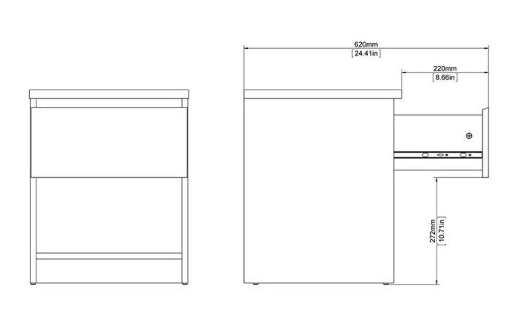 Item Code: 70276238UU Naia Bedside - 1 Drawer 1 Shelf in White High Gloss. The Naia collection offers a tribute to timeless furniture design with a modern edge.